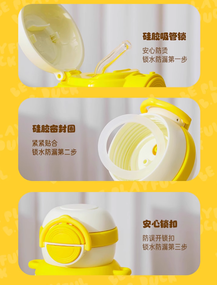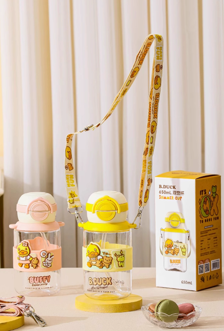 This Little Yellow Duck Official Kids Straw Cup is made from baby-safe material, non-toxic and ideal for everyday use. The dual drinking spouts allow children to drink comfortably from different angles. With a 650ml capacity, it’s perfect for keeping your little one hydrated. The adjustable strap makes it easy for parents to carry and adjust the cup. Whether at home or on the go, this cup is both practical and adorable, making it a must-have for your child.