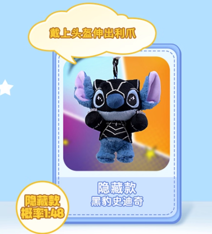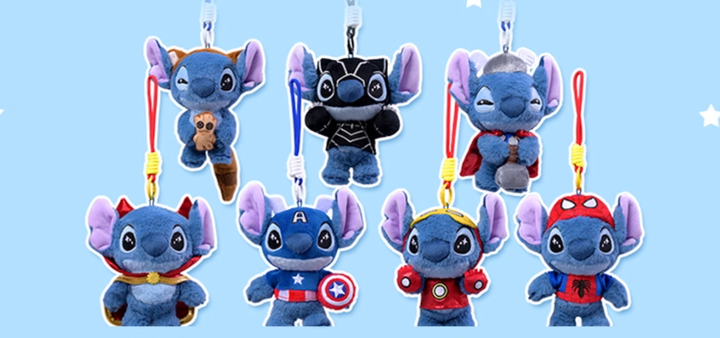 Get ready for the cutest crossover! Stitch transforms into Marvel’s iconic heroes — Captain America, Spider-Man, Iron Man, Thor, and Black Panther — in this plush keychain blind box series. Soft, huggable, and perfectly portable, each box is a surprise waiting to be discovered. A full set includes 6 pieces, with a chance to find the hidden edition! A must-have collectible for both Disney and Marvel fans.