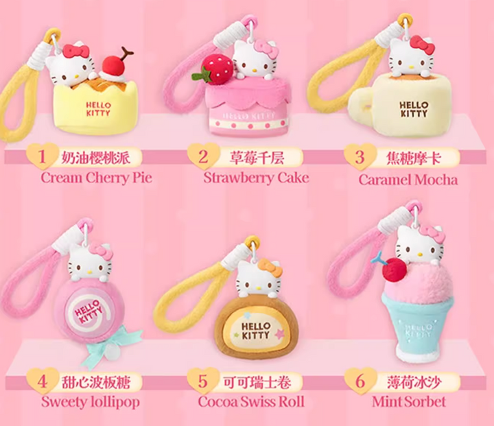 Say hello to the cutest combo β€” plush + fragrance! The Hello Kitty Sweet Workshop Scented Charm Series features Kitty in adorable dessert-inspired costumes, with soft plush texture and hidden fragrance beads inside.