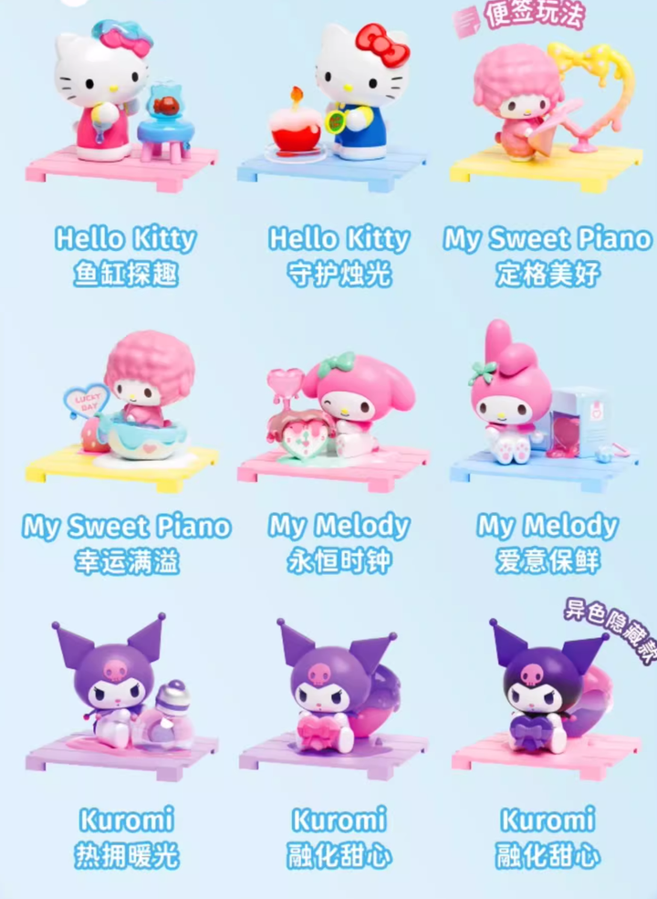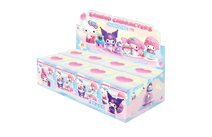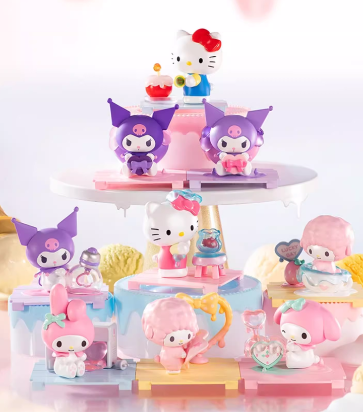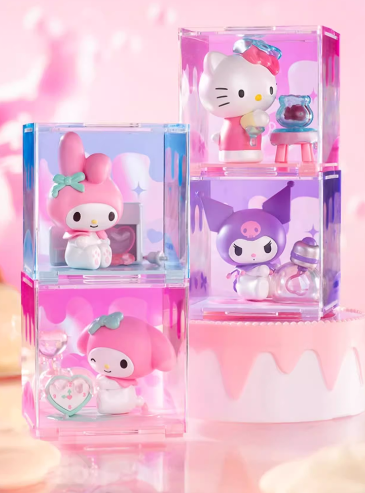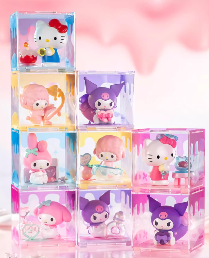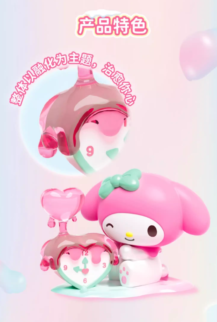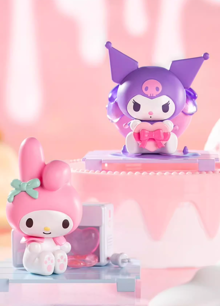 The Sanrio Melting Heart Moe Bean blind box features figures with a unique melting theme. Each figure showcases Sanrio’s classic characters in a dreamy melted world, where they take on a soft, flowing appearance. The melting elements add a whimsical and romantic touch to each character, enhancing their cuteness and charm. Each box contains 8 figures, including surprise hidden variants, ensuring an exciting unboxing experience. Perfect for collectors and display.