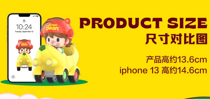 This jumbo figure features Sweet Bean driving a banana car, topped with chocolate bean details. At approx. 13.6cm tall, it’s a playful and imaginative addition to any collection.