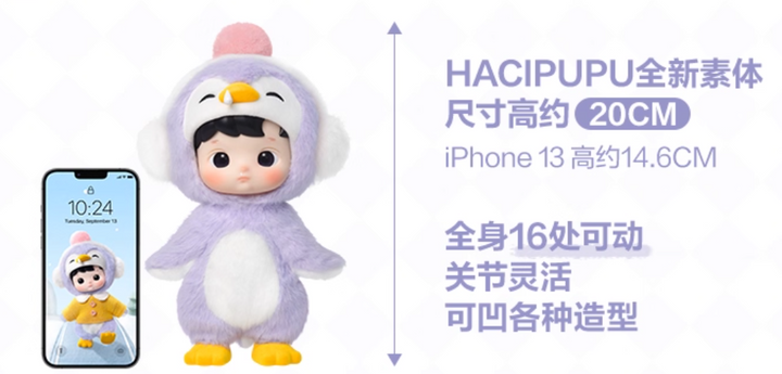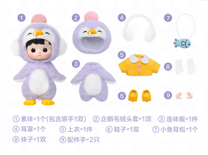 Meet the adorable HACIPUPU Penguin articulated doll! Standing at 1/8 scale, this figure features velvet-coated mouth and feet for a soft and comforting touch. The removable hat and bag accessories add a fun element of style, allowing you to create different looks for your penguin. With fully articulated joints, this doll can strike a variety of poses, making it perfect for both display and play.