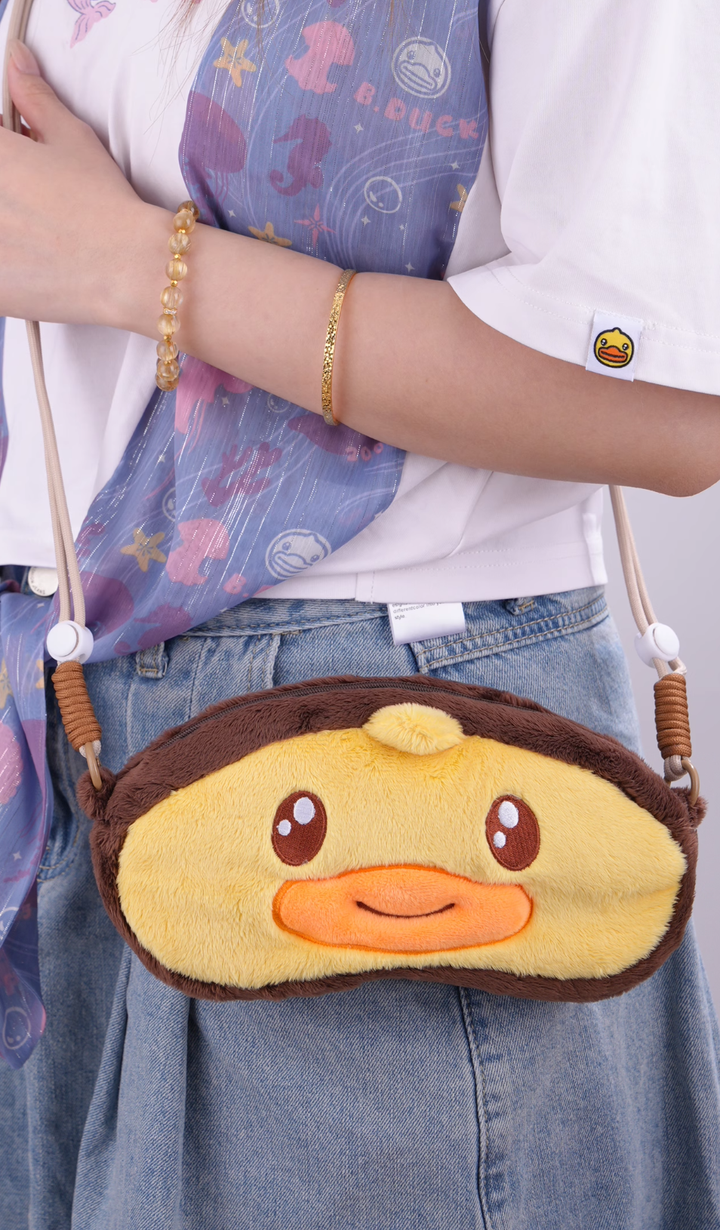 The B.Duck Official x Monchhichi Plush Crossbody Bag features a double-sided design—one side showcases the adorable Monchhichi, while the other side features the beloved B.Duck. Made from plush material, this bag is soft, comfortable, and feels great to the touch. The spacious interior easily fits your phone, wallet, cosmetics, and other small essentials, offering both practicality and charm. The crossbody design makes it easy to wear, perfect for daily outings, shopping, or as a unique gift for someone special.