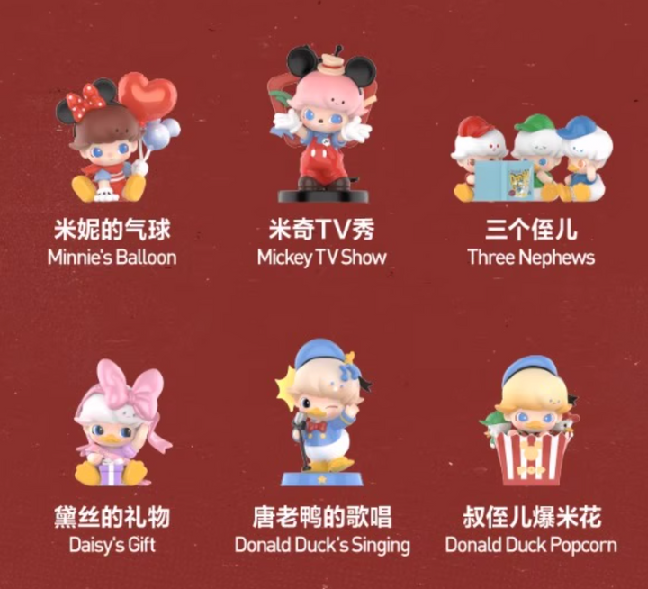 Unopened Single Blind Box, Full Case, Minnie's Balloon, Mickey TV Show, Three Nephews, Daisy's Gift, Donald Duck's Singing, Donald Duck Popcorn, Scrooge's Bathtub, Chip and Dale, Goofy's Prank, Chip and Dale's Dream, Classic Mickey, Pluto's House, The Captain of Steamboat Willie