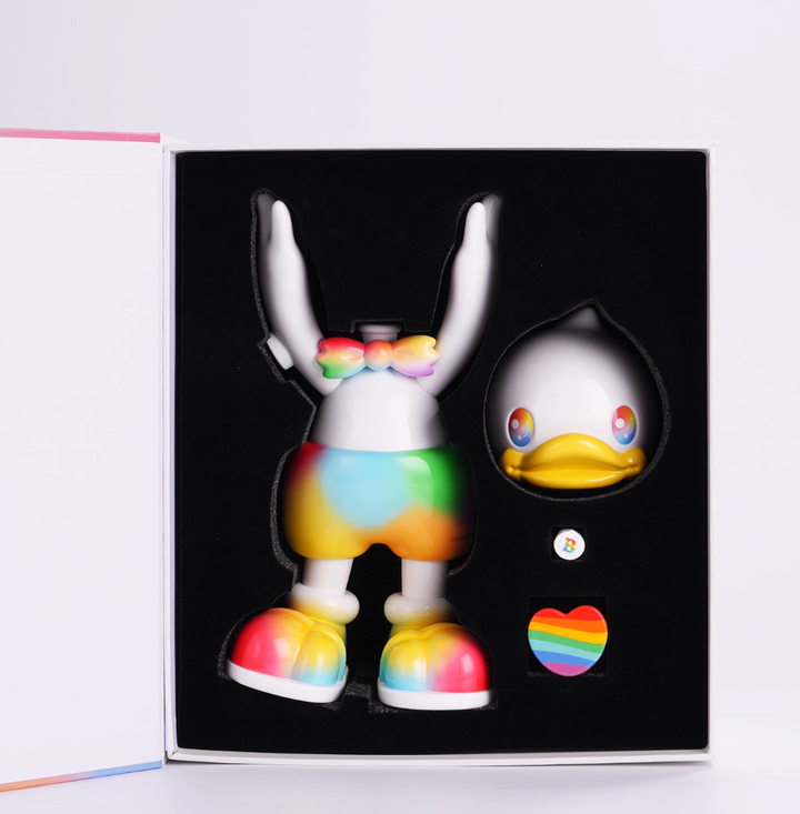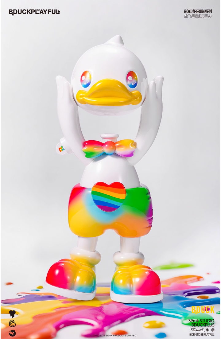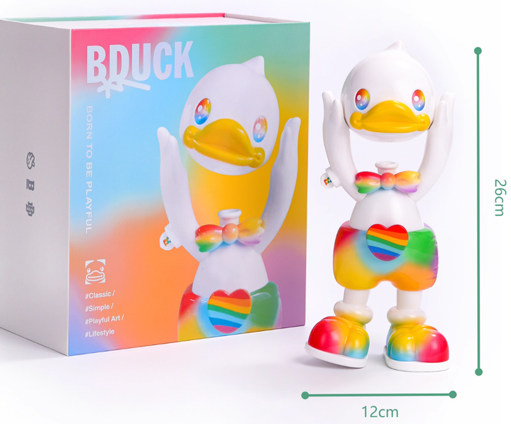 Let happiness and color soar together! The B.Duck Official Little Yellow Duck Rainbow Dopamine Series Flying Duck Trendy Figurine features the iconic Little Yellow Duck, inspired by the joyful elements of dopamine, combined with vibrant rainbow colors and a dynamic design. Standing at 26cm tall, this flying duck figurine is full of energy and fun, showcasing B.Duck’s signature cute and trendy style. Every detail is meticulously crafted, with bright and lively colors that bring endless joy and positive energy. Whether as home decor or a collectible, this figurine adds a touch of happiness and color to your space.