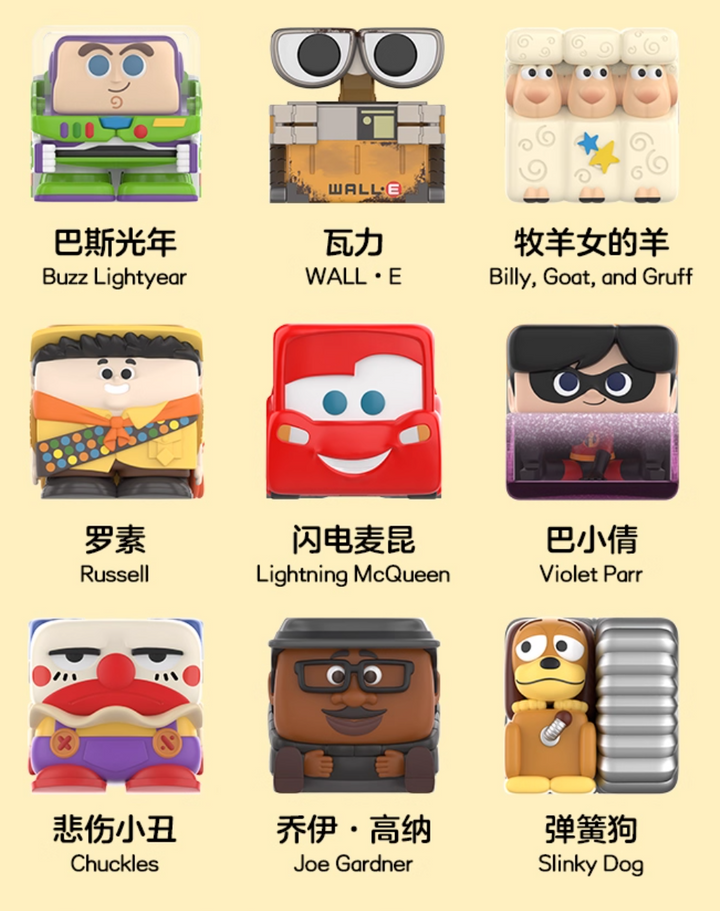 Unopened Single Blind Box, Full Case, Buzz Lightyear, WALL·E, BillyGoatand Gruff, Russell, Lightning McQueen, VioletParr, Chuckles, JoeGardner, Slinky Dog