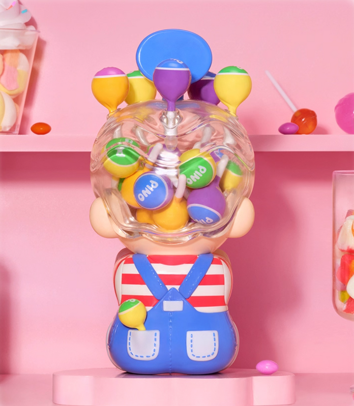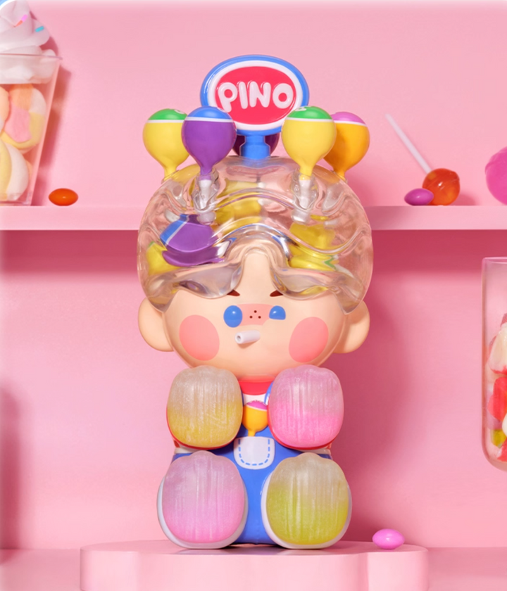 PINO JELLY becomes the ultimate lollipop ambassador, with vibrant candy-colored lollipops atop its head. The design bursts with sweetness and fun, making it a perfect collectible for candy lovers and fans of whimsical art toys.