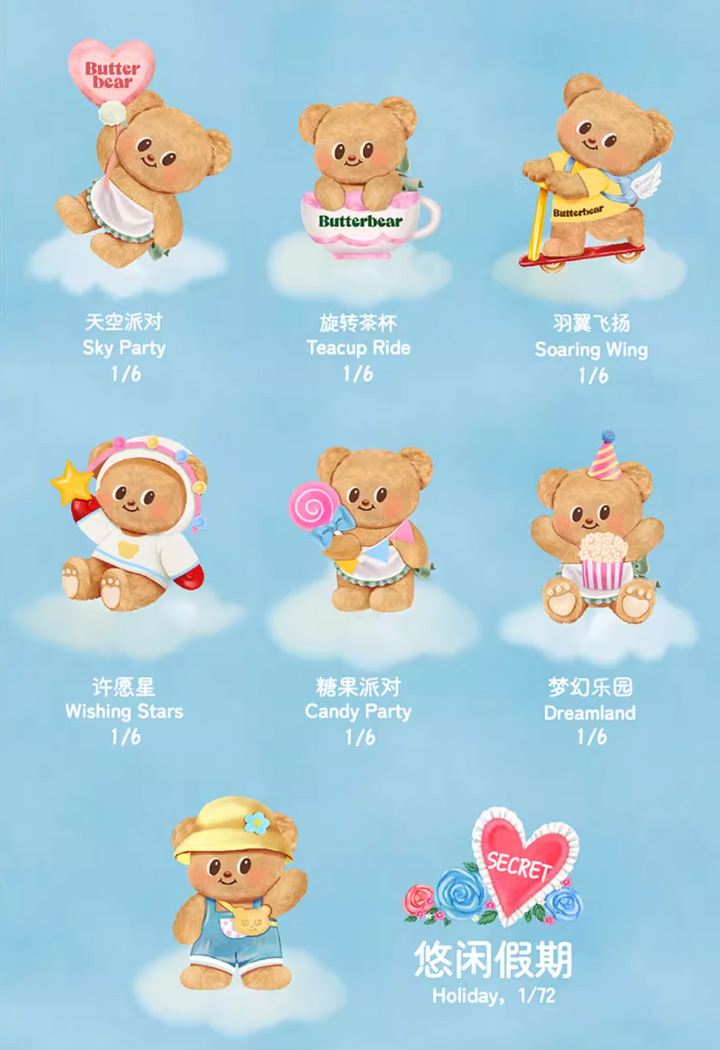 Introducing the Plzdot Butter Bear "Leisure Holiday" Series plush keychain blind box!