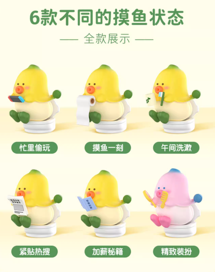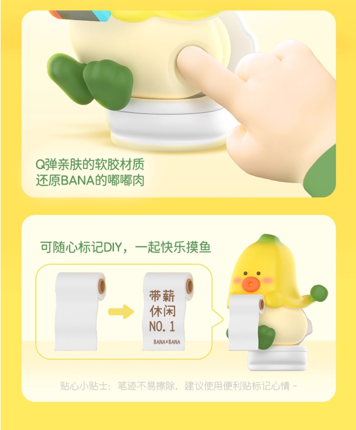 Even busy office workers deserve a little break! The Adorable BANABANA Blind Box is themed around "Stealing a Break Amidst Office Life," with each blind box containing an adorable soft rubber BANABANA character. The designs are inspired by the moments of relaxation office workers find during their hectic workday. What’s special about these characters is that they feature a switch that makes them shake, adding interactive fun. Made of soft rubber, these figures are both cute and flexible, perfect as desk decor or for bringing a joyful atmosphere to your workspace.