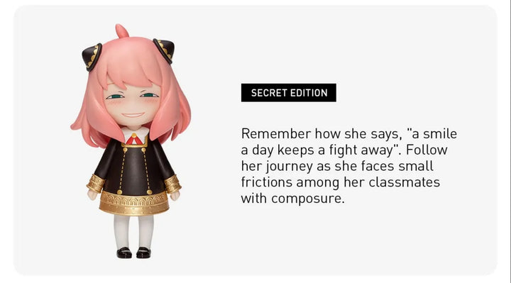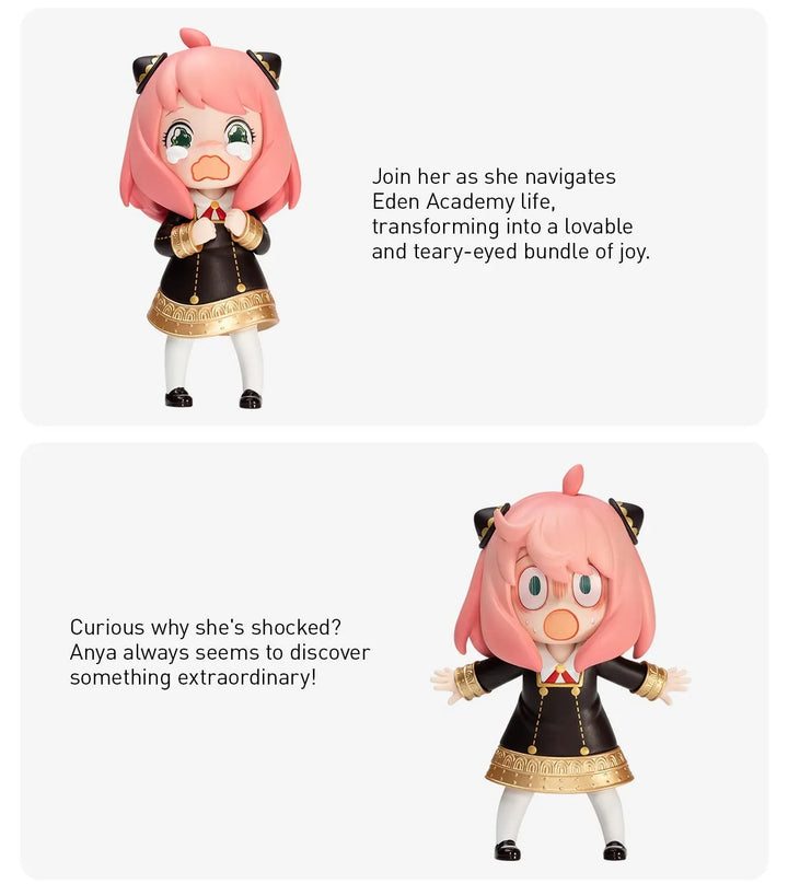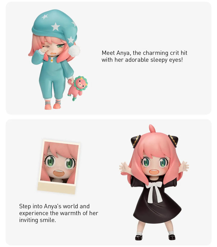 POPMART Spy Family "Anya's Daily Life" blind box figurine! Embark on an exciting and heartwarming adventure with Spy x Family, a unique anime that combines the thrilling world of espionage with the warmth of family life. Inside each blind box, you'll find a surprise handcrafted figurine from the beloved series, capturing the essence of the characters and their daily adventures. Perfect for fans of Spy Family, and collecting cute figurines. Don't miss out on the chance to bring home a piece of the Spy x Family world with these adorable blind box figurines!