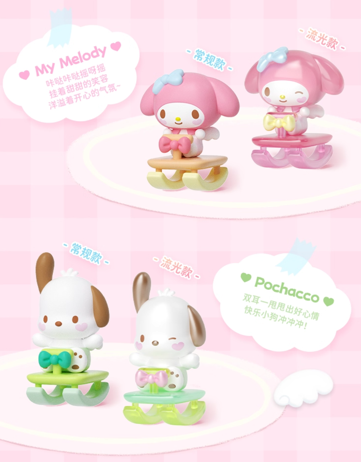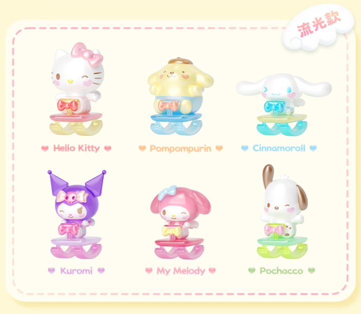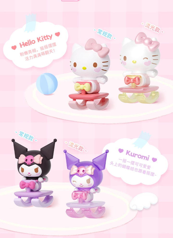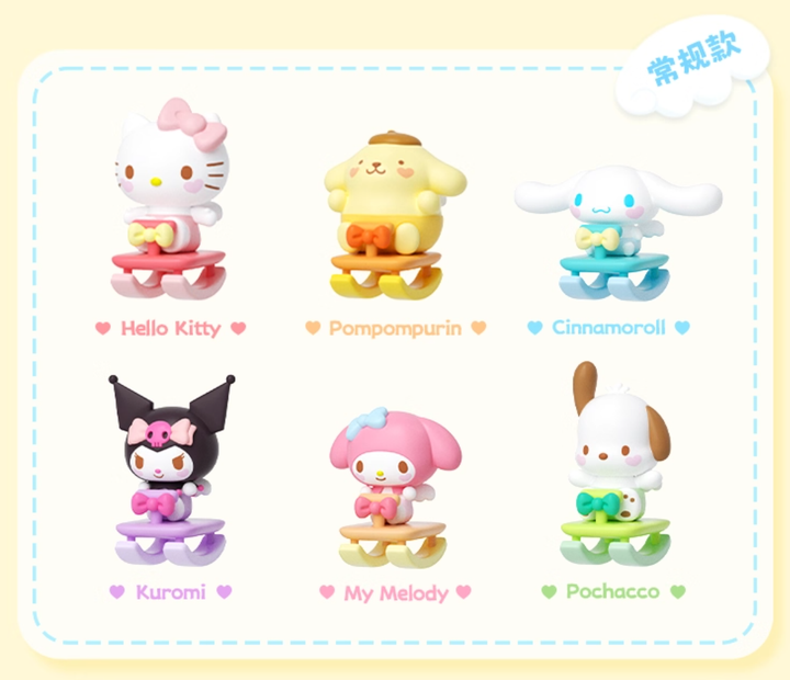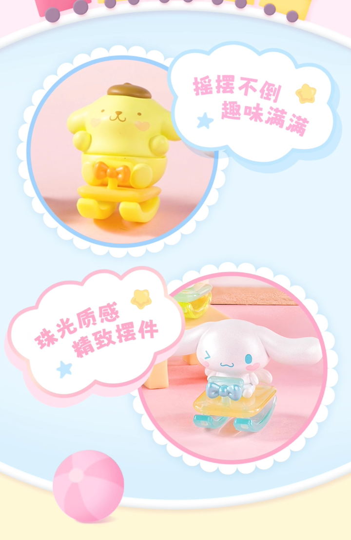 The Sanrio Childhood Joy Ride Moe Bean series features beloved Sanrio characters riding on cute little rocking cars, embodying pure childhood joy and innocence. Each blind box contains a different character, representing the entire Sanrio collection. With 18 figures in each box, this series offers a complete collection for fans. Every unboxing is filled with excitement and surprises.