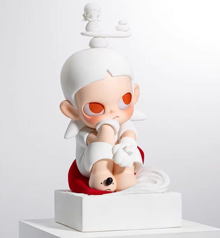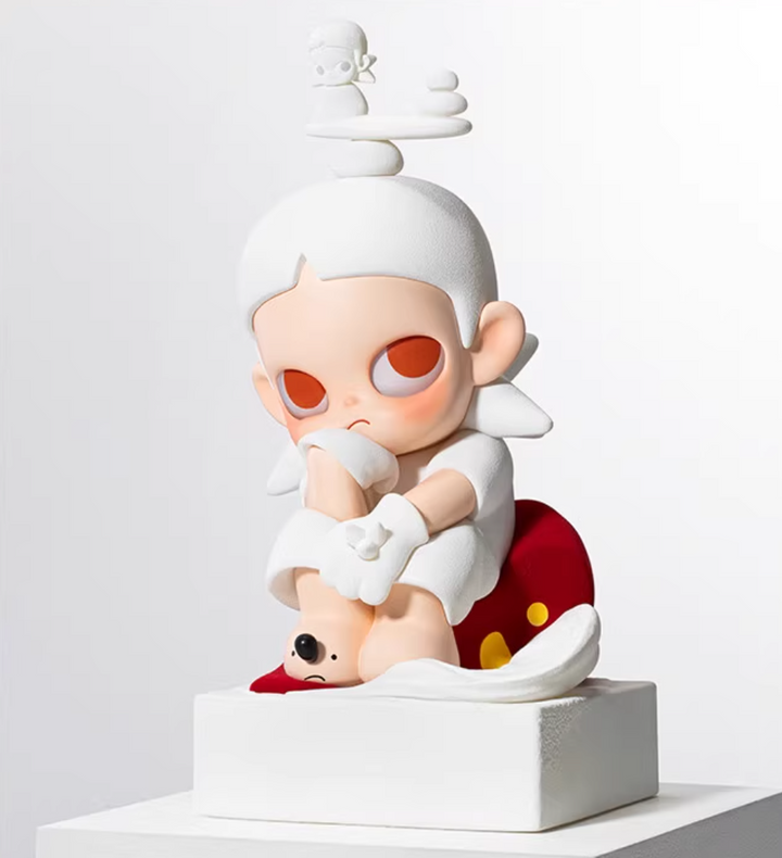 Dressed in a pure white top and resting on a red heart-shaped cushion, Zsiga exudes warmth and sweetness. The contrast of the white and red symbolizes pure love and quiet reflection, evoking feelings of innocence and simplicity.