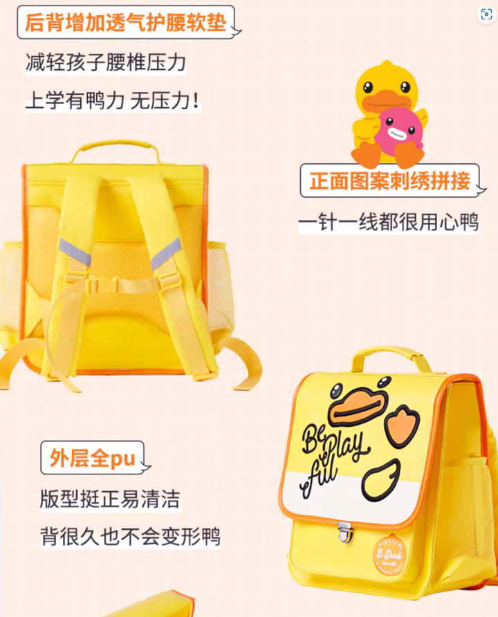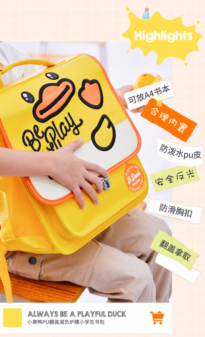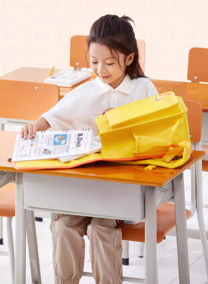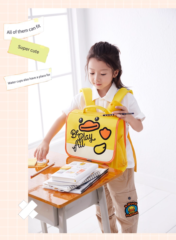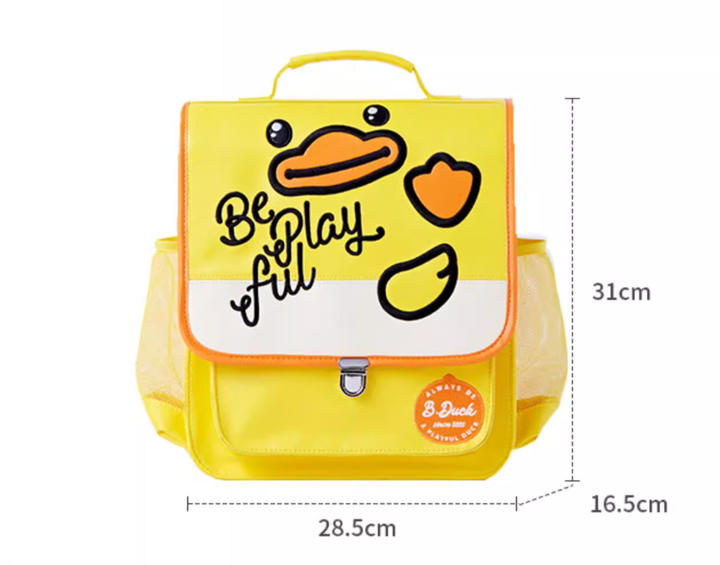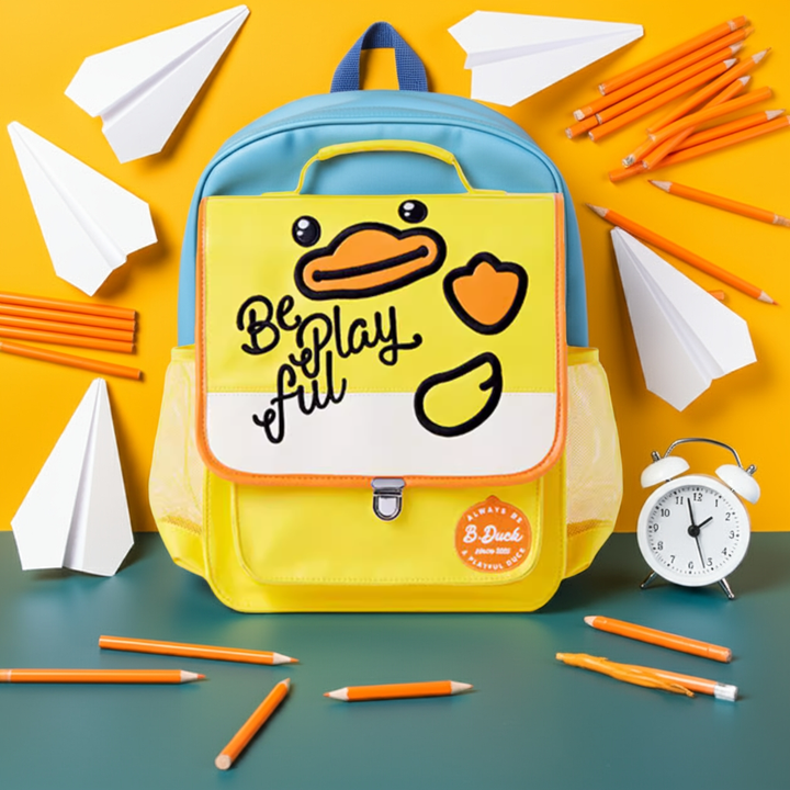 This Little Yellow Duck flap school backpack is made from lightweight and durable material, designed specifically for elementary school children. It has ample space to store books and stationery, with a flap design for easy access while keeping belongings secure. Padded shoulder straps provide comfortable carrying and reduce strain. The cute B.Duck design adds a playful touch, making school days more cheerful and fun.