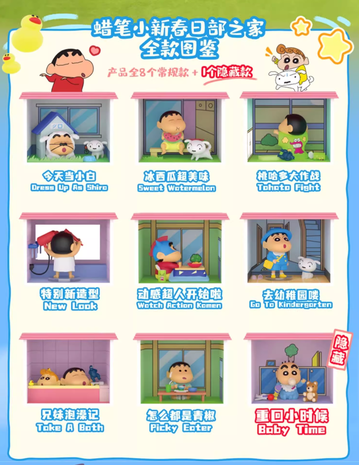 Bring Shin-chanโs everyday life to your shelf! ๐ Each blind box includes a mini buildable house ๐ก with fun lifestyle scenes โ from playful moments ๐ฎ to cozy family vibes ๐. Collect them all to complete the Kasukabe home set! ๐