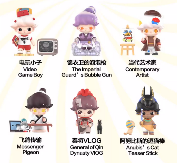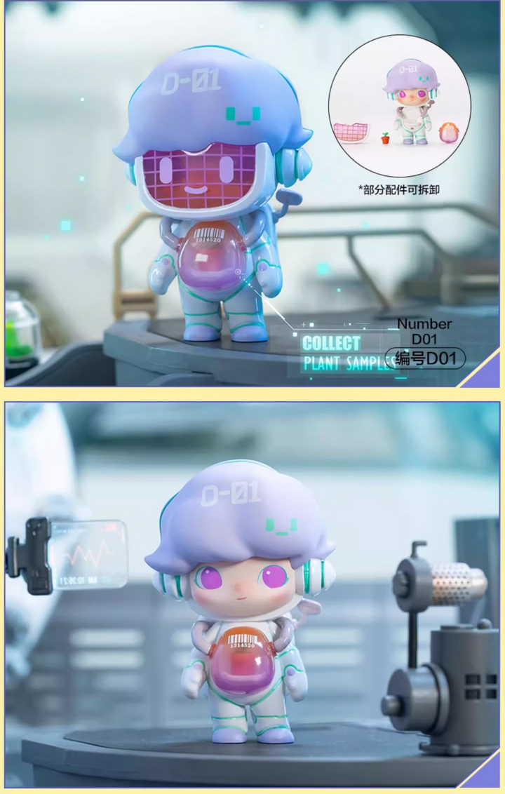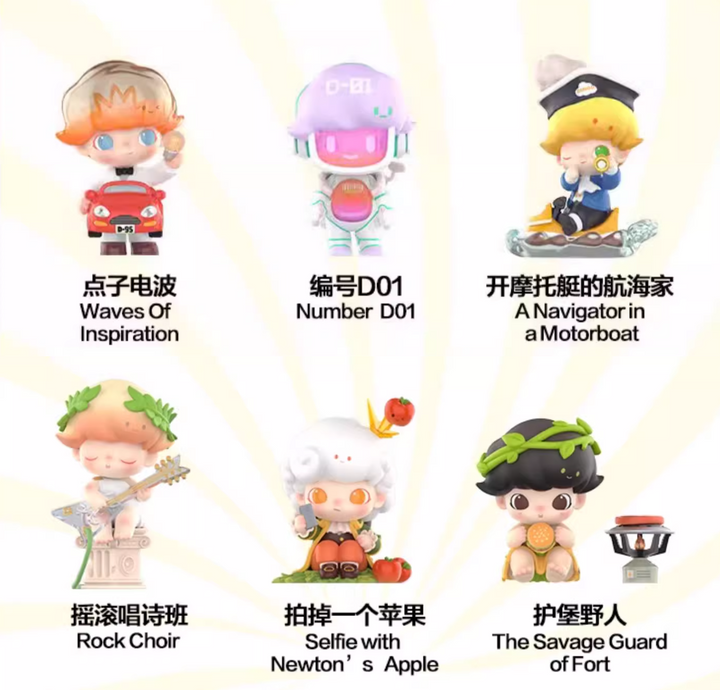 DIMOO embarks on a whimsical journey through time and space. This series is full of imagination, blending vintage and futuristic elements in highly creative designs. Each figure tells a unique time-travel tale, making it a must-have for collectors and art toy enthusiasts.