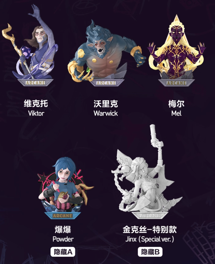 The League of Legends: Arcane series from POPMART brings the iconic champions to life in bust form, capturing the essence and energy of the characters from the hit show. Each figure showcases detailed sculpting and dynamic expression, offering fans a chance to collect and display their favorite heroes. The blind box format adds excitement with a surprise in every box.