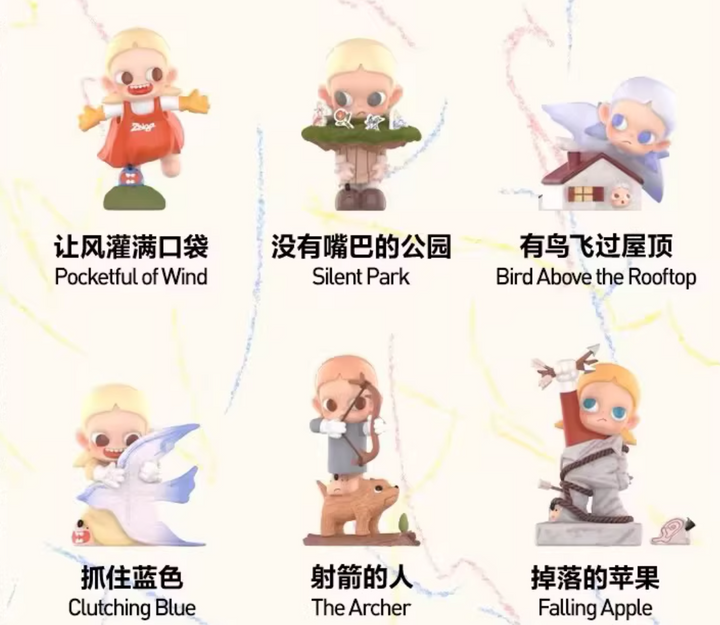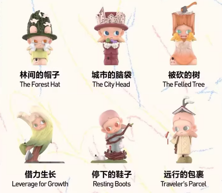 Unopened Single Blind Box, Full Case, Pocketful of Wind, Silent Park, Bird Above the Rooftop, Clutching Blue, The Archer, Falling Apple, The Forest Hat, The City Head, The Felled Tree, Leverage for Growth, Resting Boots, Traveler's Parcel, Dairy |