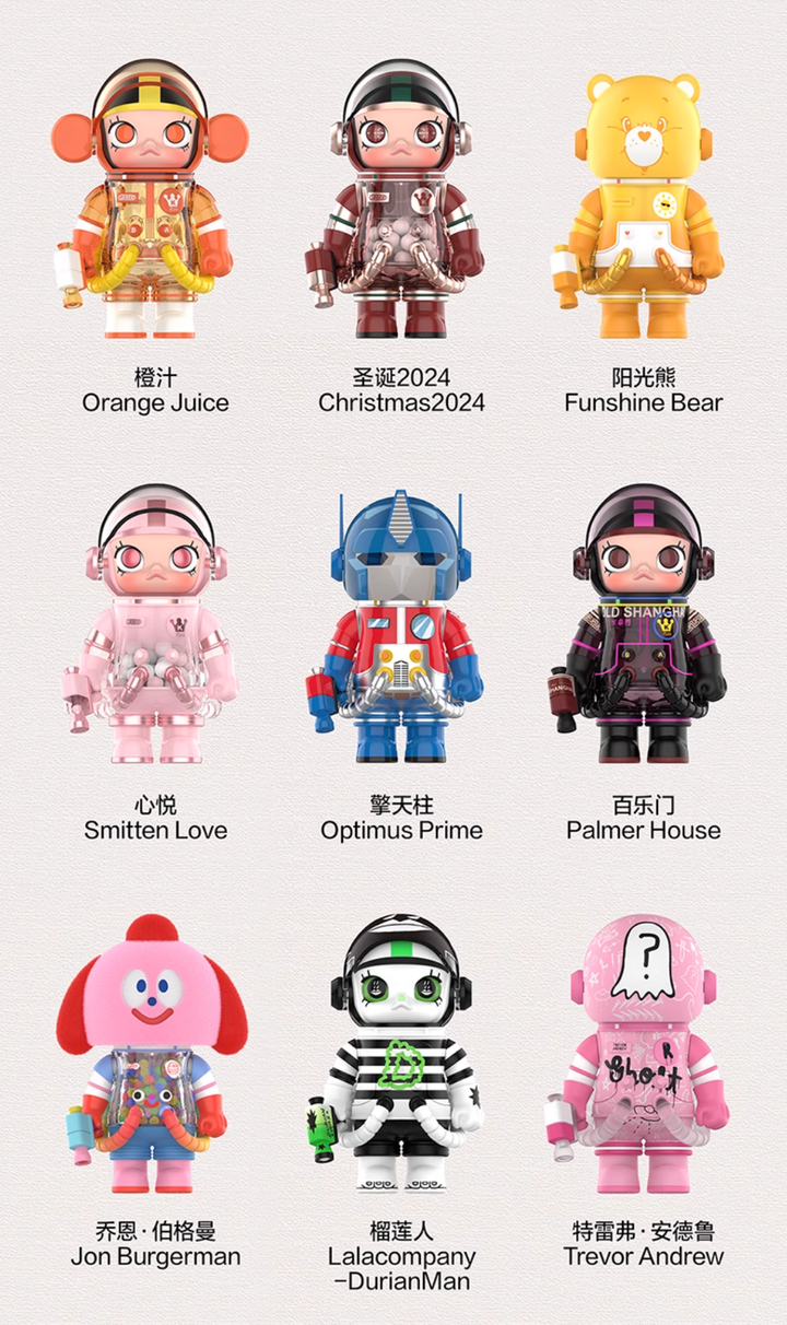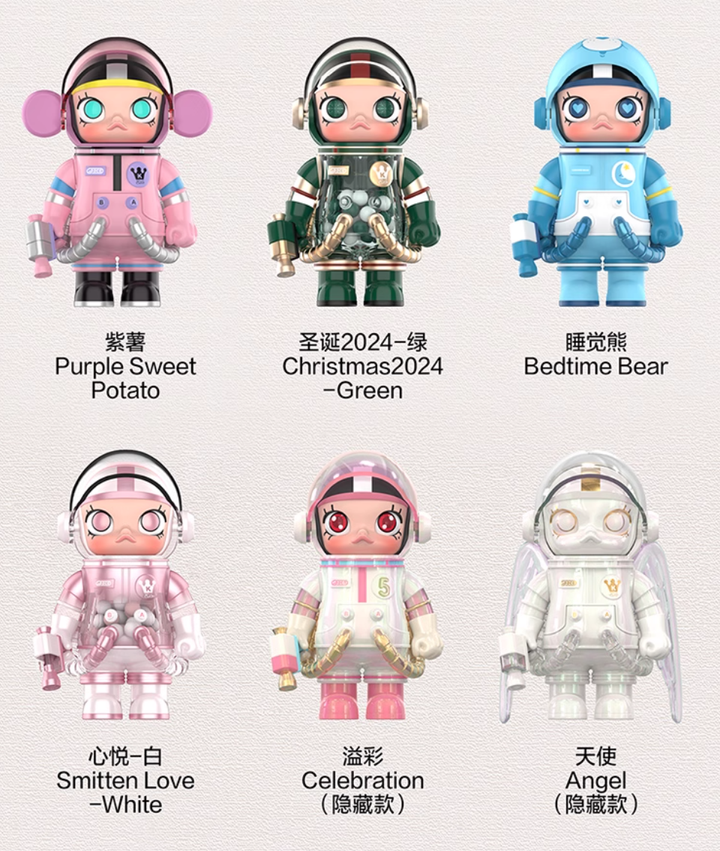 Celebrate the anniversary of SPACE MOLLY with this brand-new 100% blind box collection! 🚀 Each figure comes with a removable face shield, revealing Molly’s iconic charm in a futuristic style.