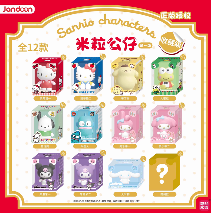 Discover the first wave of Sanrio Mimongli mini figures! 💖 Each blind box features a small yet finely crafted design, making them perfect for display or collecting. ✨