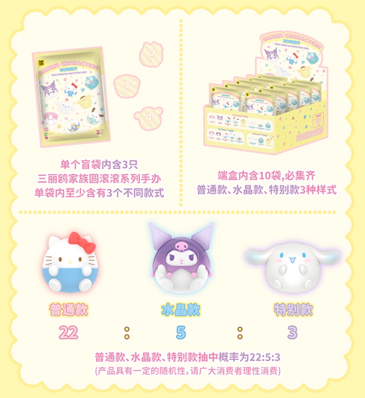 Each bag contains 3 adorable mini characters, with 10 bags per box for double the fun and surprises! 😍