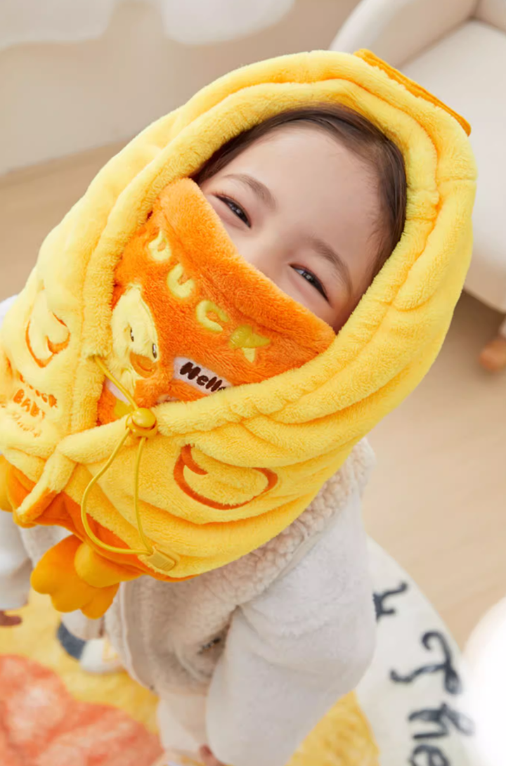 This Little Yellow Duck kids’ hooded scarf combines a hat and a neck warmer in one, providing full protection from the cold. Made with soft, skin-friendly material, it is warm and comfortable to wear. The adorable B.Duck design adds a playful touch, keeping kids cozy, cheerful, and stylish during chilly days.