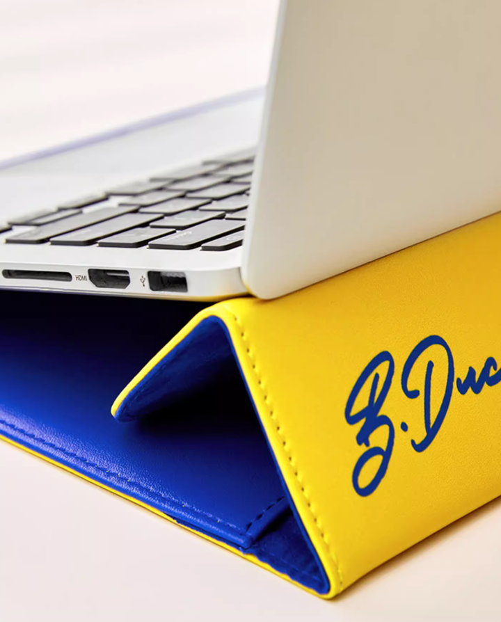 This Little Yellow Duck laptop sleeve is designed for 13-inch and 15-inch laptops, made from water-resistant and stain-resistant material to protect your laptop from spills and dirt. The sleek design features the adorable Little Yellow Duck, blending style and practicality. It not only protects your laptop but also functions as a laptop stand, enhancing comfort for viewing and use.