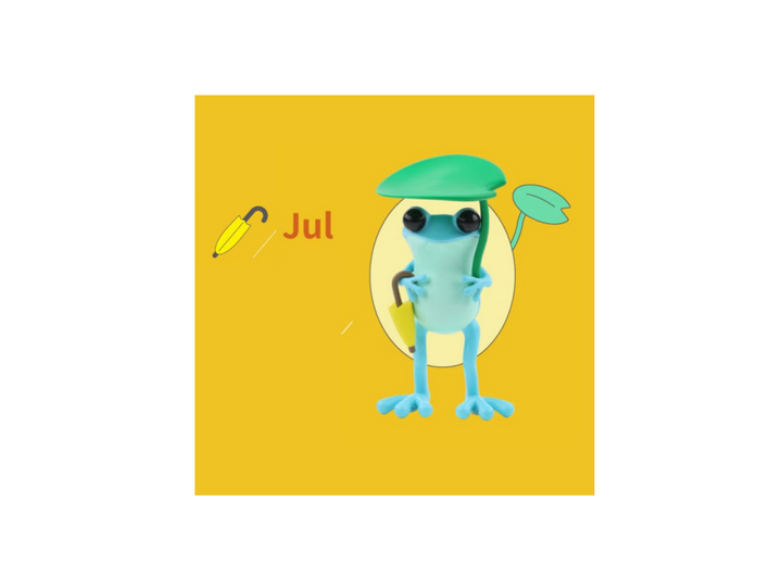 🐸 Jul · Light Rain : Apo Frog with an umbrella when it rains
