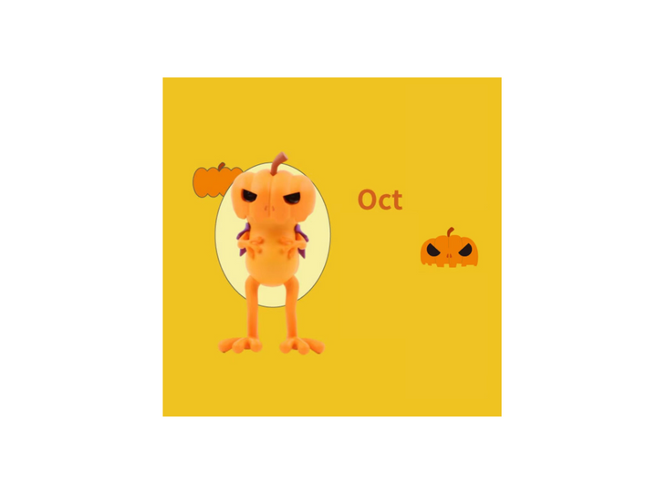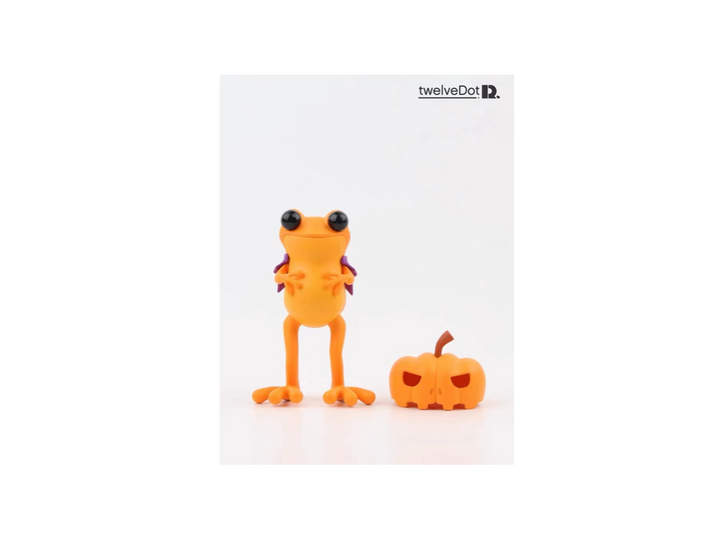 🐸 Oct · Halloween : Apo Frog enjoying Halloween while wearing a pumpkin mask and holiday costume