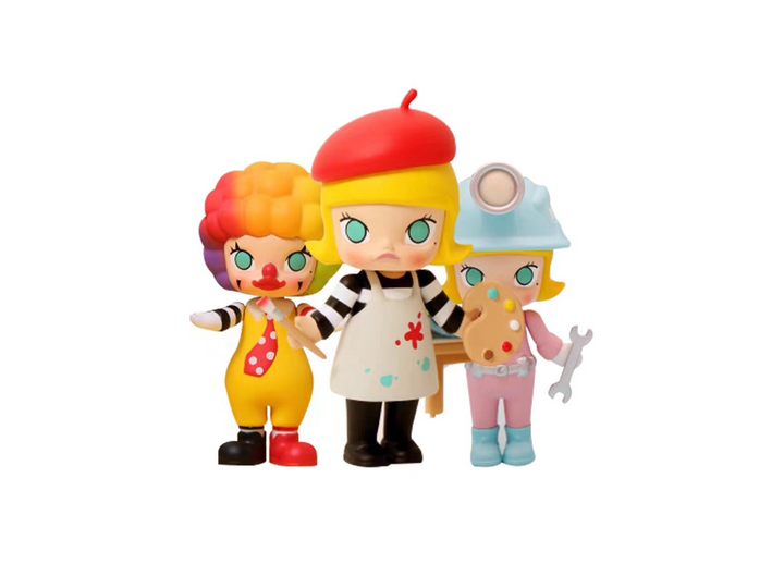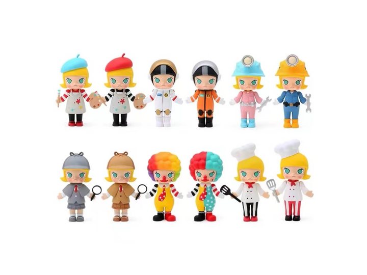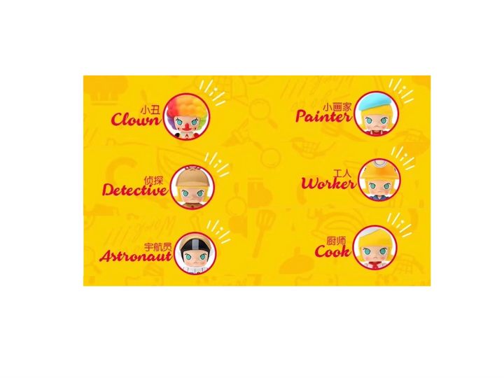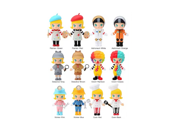 🤡  Blind box include : Painter Green & Red / Astronaut White & Orange / Detective Gray & Brown / Clown Rainbow & Classic / Worker Pink & Blue / Cook Red & Black