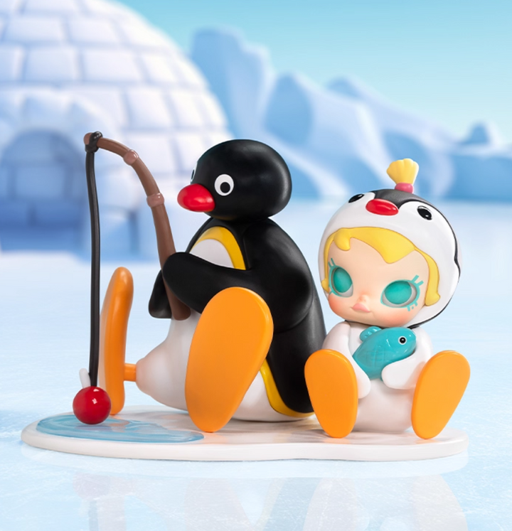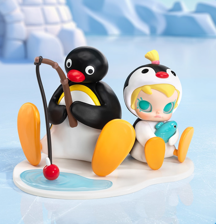 This adorable collectible features Baby Molly in a cute penguin costume, joined by the iconic claymation character PINGU. Capturing a peaceful fishing scene, it brings a playful and heartwarming vibe to your shelf.
