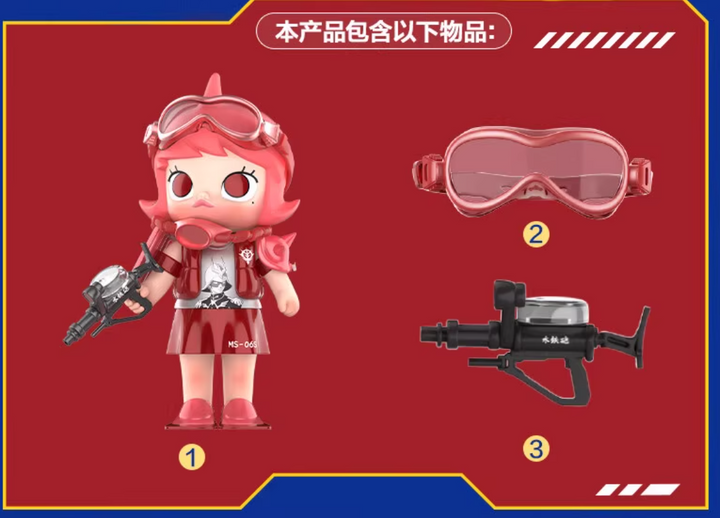MOLLY transforms into Char Aznable’s iconic red ZAKU from the Gundam universe! With her signature round eyes and the sleek mech design, this figure brings a bold clash of adorable and powerful. Comes with a detachable helmet and handgun for extra playability.