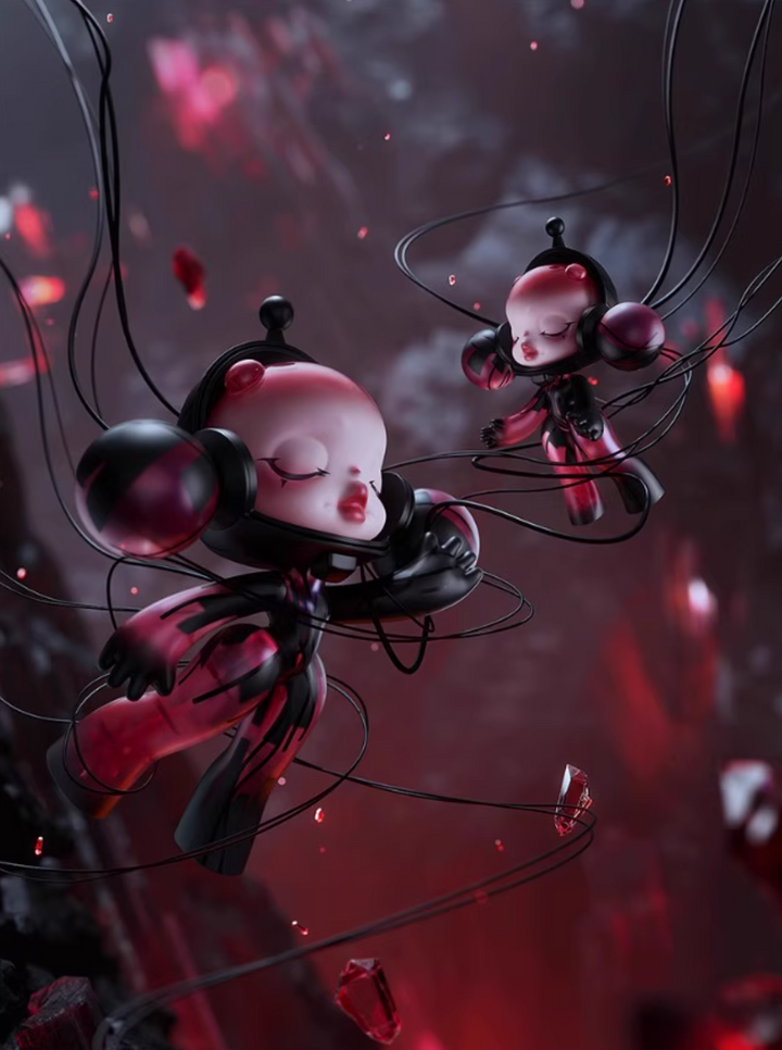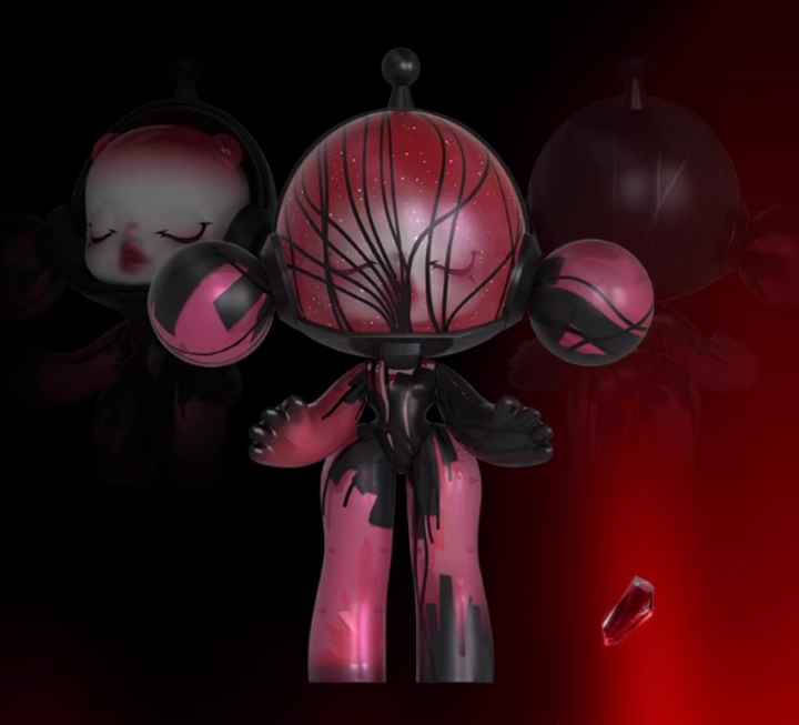 A dazzling evolution of darkness and elegance — the SKULLPANDA “Red Crystal” 400% from POPMART’s α Collection features shimmering pearlescent sparkle, embossed water-transfer detailing, and a stunning built-in LED light that brings the figure to life.