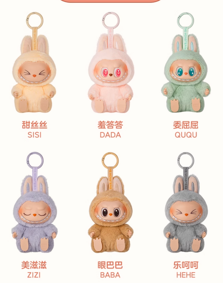 Featuring an upgraded Morandi color palette with soft, elegant hues. This figure offers three switchable facial expressions: open eyes, blinking, and closed eyes. The plush fur is upgraded to soft straight fibers for a finer, more comfortable touch. Combining vinyl and plush materials, it’s both adorable and collectible — a must-have for blind box and keychain enthusiasts.