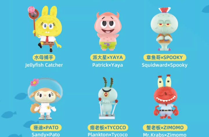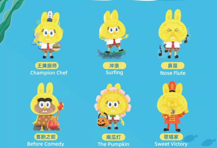 💡 Each figure blends iconic SpongeBob characters with Labubu's signature charm
