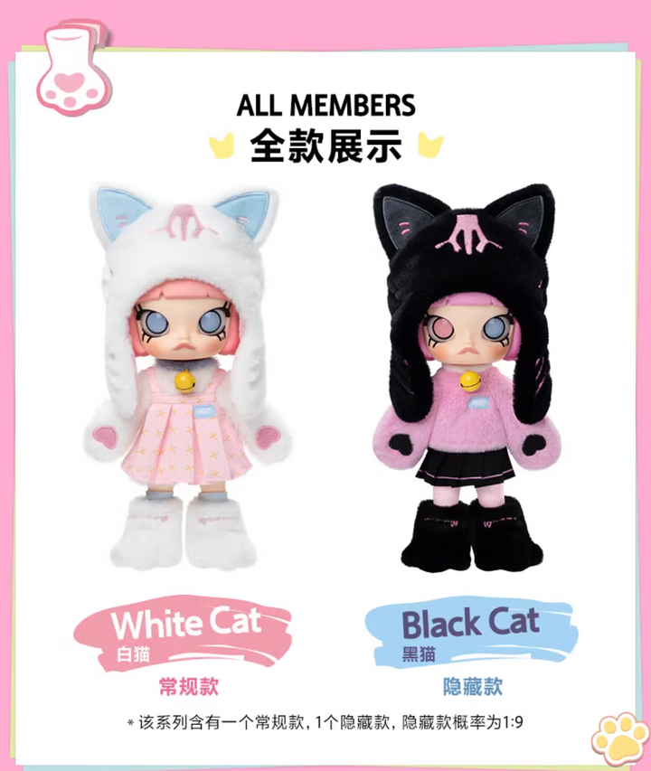 Each blind box includes one of two versions — White Cat (regular) or the ultra-cool Black Cat (hidden, 1:9 chance) — adding excitement to every unboxing!