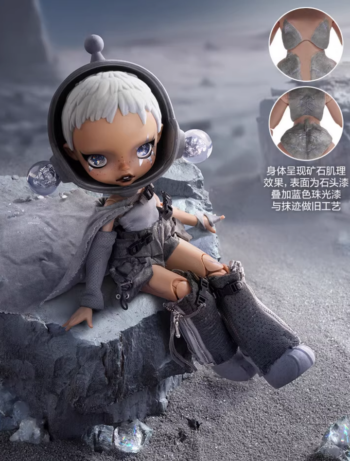 • Flocked hairstyle adds a tactile, futuristic edge